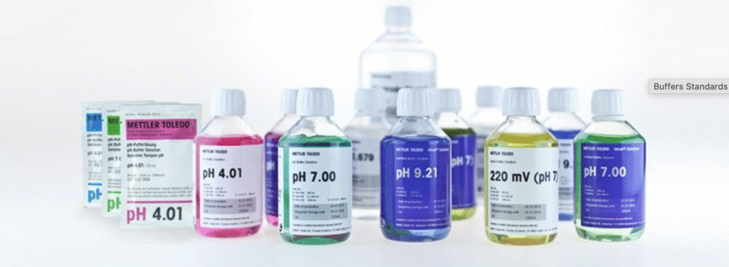 Ofrecemos una completa línea de buffers y estándares certificados diseñados para garantizar la calibración precisa y confiable de instrumentos de medición en laboratorio e industria.
